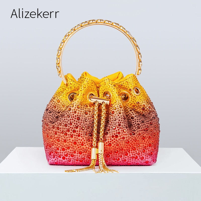 Bolsa redonda com alça de cristal para noiva, festa de casamento